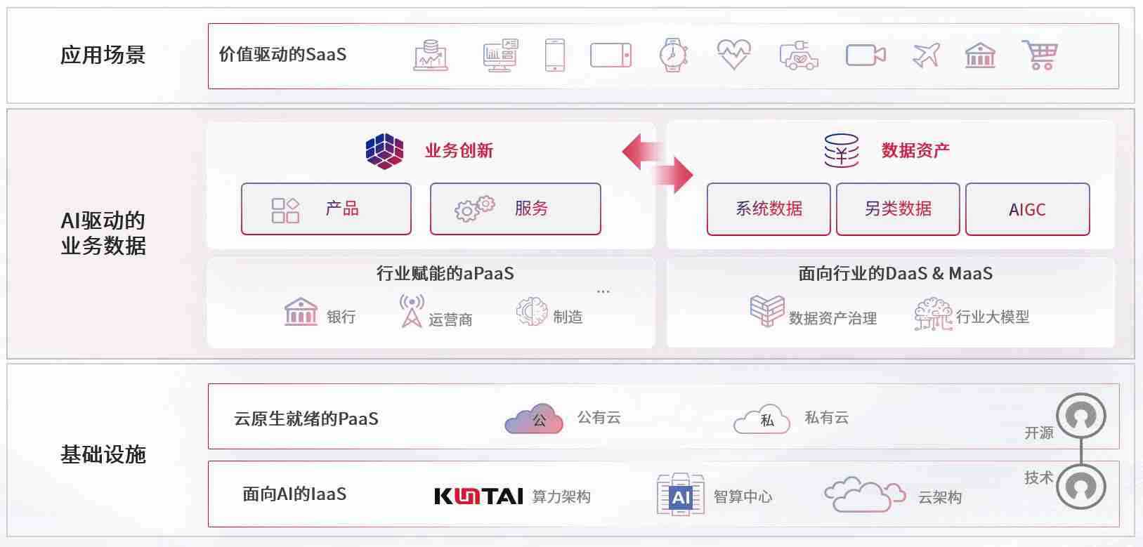 数字时代,,,,围绕企业数字化转型的关键要素,,,KOO钱包数码开创性的提出数云融合战略和技术体系框架,,,,着力在云原生、、数字原生、、AI原生和信创产业上架构产品和服务能力,,,为处在不同数字化转型阶段的快消零售、、、、汽车、、、、金融、、、医疗、、政企、、、、教育、、运营商等行业客户提供泛在的敏捷IT能力和融合的数据驱动能力,,,,构建跨界融合创新的数字业务场景和新业务模式,,助力企业级客户建立面向未来的核心能力和竞争优势,,,全面推动社会的数字化、、智能化转型升级。。。