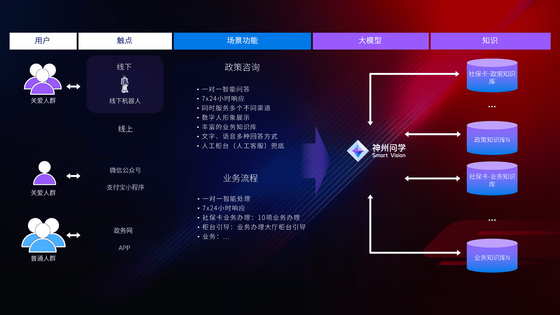 • 线上线下全覆盖:线上提供微信公众号、、支付宝小程序、、、、政务网、、、、app多种渠道,,,,与线下机器人形成完整服务体系。。。。